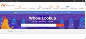 Namecheap es otro popular registrador de dominios que ofrece una herramienta de búsqueda WHOIS en su sitio web. Puedes utilizar esta herramienta para obtener información sobre cualquier dominio registrado a través de Namecheap o para investigar dominios en general.